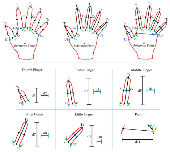 - Guo, J.-M.; Liu, Y.-F.; Chu, M.-H.; Wu, C.-C.; Le, T.-N. Contact-free hand geometry identification system. In Proceedings of the 18th IEEE International Conference on Image Processing, Brussels, Belgium, 11–14 September 2011; pp. 3185–3188. [Google Scholar]