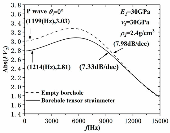 Similar to the scattering model of the incident elastic waves by an empty model, theoretical frequency responses FV2, FV4, TV, FS and TS of borehole tensor strainmeters are introduced as follows,