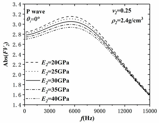 Influence of Young’s modulus of the expansive grout on the theoretical amplitude spectrum of gauge combination FV2 for the incident P wave.