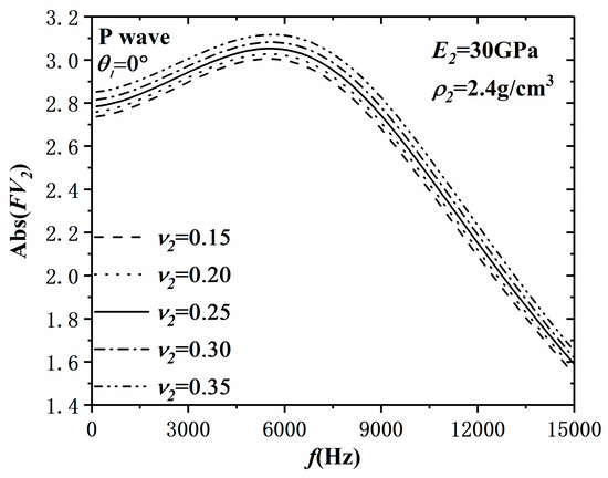 Influence of Poisson’s ratio of the expansive grout on the theoretical amplitude spectrum of gauge combination FV2 for the incident P wave.
