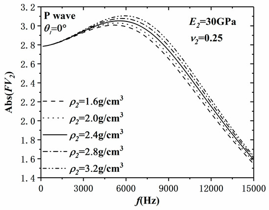 Influence of the expansive grout density on theoretical amplitude spectrum of gauge combination FV2 for the incident P wave.