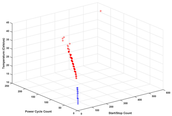Hard disk drives are complex electromechanical devices and their failure can be caused by a number of factors, which may not always be easy to determine. A review of the available literature reveals that three approaches have been considered to determine the characteristics of failed HDD and then to use that knowledge to predict an impending failure. The first approach explores the use of external sensors, the second approach analyzes logs and replacement records of failed drives, whereas techniques based on the third approach utilize self-monitoring, analysis, and reporting technology (SMART) attributes that are internally recorded in all HDD. In [9], the use of accelerometers and acoustic emissions (AE) sensors has been investigated. However, the authors conclude that the degradation signatures obtained from the vibration acceleration and AE signals are weak, inconsistent, and do not follow a trend that is indicative of the degradation of the HDD. Moreover, the use of accelerometers and AE sensors is prohibitive in terms of the associated costs, given the number of sensors required to monitor large-scale IT infrastructure. Hence, they propose using three SMART attributes instead, to evaluate the condition of the HDD. In [3,4,6,10], the authors analyze logs and replacement records of more than hard disks that were determined to be faulty and hence replaced by the customers. However, these studies do not investigate the causes of disk failures; rather, they provide an analysis of the data from a reliability perspective, and hence do not offer any useful clues for predicting a failing HDD. Nevertheless, these studies do offer important conclusions. First, HDD failure rates are influenced by factors such as workloads, “duty cycles”, “powered-on-hours”, and the temperature and humidity of the environment they operate in. Second, the actual replacement rates for HDD are much higher than those suggested by manufacturer specifications, roughly by a factor of 2 to 10 for drives less than five years old, and by a factor of 30 for older drives. Third, the replacement rates for serial advanced technology attachment (SATA), small computer system interface (SCSI), and fiber channel (FC) drives are more or less the same. The majority of the techniques [7,11,12,13,14,15,16,17,18,19,20,21,22,23,24] developed to detect failing HDD use the third approach, i.e., utilizing SMART attributes to detect impending disk failure. SMART was originally named drive failure prediction (DFP) and was adopted by the HDD industry in 1995 [11,13]. It monitors different operational parameters and features of a disk drive, such as temperature, read-write errors, and power-on hours, which can be used by the basic input output system (BIOS) or client software to detect an imminent failure. The simplest way to use these attributes to detect a failing disk has been to determine whether a particular SMART attribute has exceeded a predetermined threshold or not [11,13]. However, among the various SMART attributes, identifying the ones that are more indicative of a failing disk drive is not easy. There is no broad consensus on the precursors of hard disk failure among researchers. For example, the study in [16] concludes that there is no significant correlation between disk failure and its temperature and activity level; this assertion, however, is disputed by later studies [7,22]. In [7], the authors find a direct relationship between increasing AFRs and increasing disk temperatures, whereas, in [22], hard disk failures are found to be inversely related to the temperature, i.e., hotter disks are less likely to fail than cooler disks. The authors assume that this may be due to higher relative humidity experienced by the cooler disks. It’s important to note that both [7,22] studies are based on the IT infrastructures of the same company. In [16], the authors acknowledge a high correlation between several SMART attributes and disk failures; they, however, rule out their utility at predicting the failure of individual disk drives. Nevertheless, several studies have demonstrated that SMART features can, in fact, be used to predict impending failure in disk drives [9,12,13,15,17,18,19,20,21,23]. Many of these studies [9,12,19,21,23,24] do not provide a sound mechanism for selecting the SMART attributes that can serve as the most effective precursors for an impending failure. The selection of good SMART attributes is very important for improving the detection accuracy and reducing the false alarm rate (FAR). Moreover, because of the inherent class imbalance in the available data, i.e., an average ARR of 4% means that 96% of drives are healthy and only 4% fail, reducing the FAR is even more significant, e.g., for an infrastructure with disk drives, a reduction of % in the FAR would result in 1000 fewer replacements of otherwise healthy disk drives. Thus, even a small improvement in the FAR would save the time, effort, and bandwidth required to perform unwarranted disk replacements and the associated data transfers.