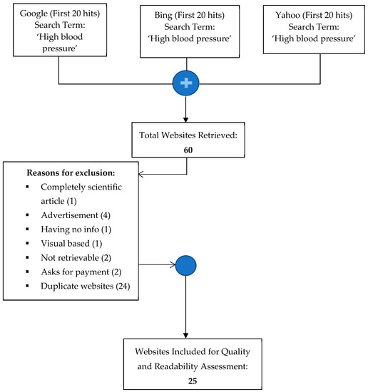Therefore, we limited our search to the first 20 hits from each search engine, so a total of 60 search results are rigorously reviewed. During this process, advertisements and sponsored links were ignored. Similarly, websites with irrelevant, non-English content, those asking for payment, completely scientific based articles and videos links are excluded from the list. Furthermore, identical websites are also filtered out. As a result of this filtering process, 25 unique websites are chosen for analysis (See Table A1 in Appendix A). The workflow of methodology is shown in Figure 1.