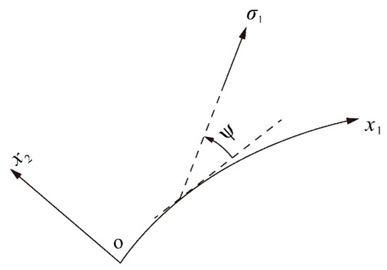 Here k is the cohesion and is the angle of internal friction. Both are material constants. Let be the orientation of the major principal stress relative to the direction (Figure 2). Then, using (3), the stress components referred to the coordinate system are expressed as