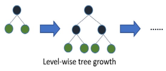 Most of the learning algorithm tree of decision tree is generated by the level-wise growth method, such as XGBoost, as shown in Figure 2: