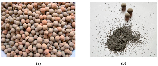 The coal gangue ceramsite shown in Figure 1 was provided by Chaoyang Hualong Co., Ltd. Its physical properties in different particle sizes were measured and are listed in Table 4.