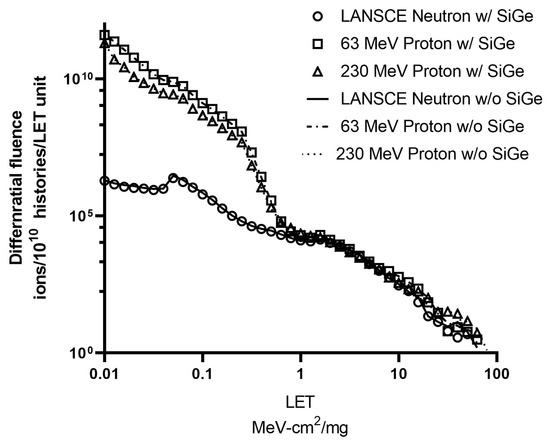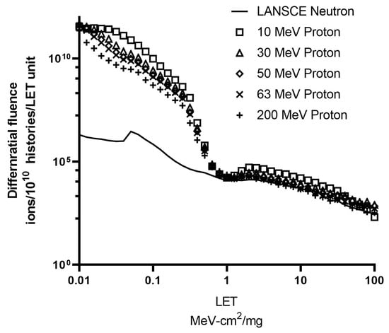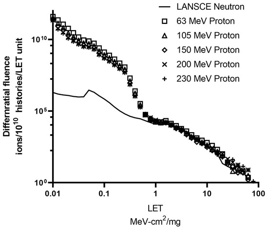 - Hiemstra, D.M.; Blackmore, E.W. Let spectra of proton energy levels from 50 to 500 mev and their effectiveness for single event effects characterization of microelectronics. IEEE Trans. Nucl. Sci. 2003, 50, 2245–2250. [Google Scholar] [CrossRef]