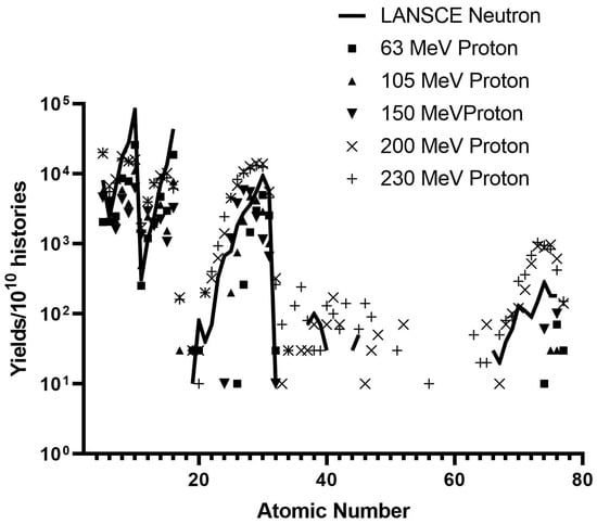 | LANSCE Neutron | 63 MeV Proton | 105 MeV Proton | 150 MeV Proton | 200 MeV Proton | 230 MeV Proton | |