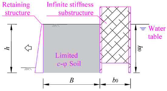 - An explicit boundary width for a limited c-φ soil during the active earth pressure calculation was determined. When the distance between the existing large rigid underground structure and the retaining wall of the foundation pit is within the boundary of the limited c-φ soil width, the active earth pressure model proposed in this study is needed for the calculation. However, the method proposed in this study is not suitable for situations where B < (2ccotφ)/(γcotδ) and ccotφ ≥ qKaw’.