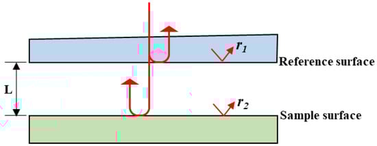 In the wavelength-tuning Fizeau interferometry, significant interferences appear as a result of multi-reflections between the sample surface and the reference surface. Figure 2 shows the multi-reflections between the reference surface and the sample surface with reflectivities r1 and r2.