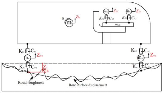 In order to study the interaction between human, bus, and road, the coupled vibration model is necessary. The human–bus–road model includes components such as the road model, road surface roughness, and the human–bus model. The details of each component are elaborated as follows.