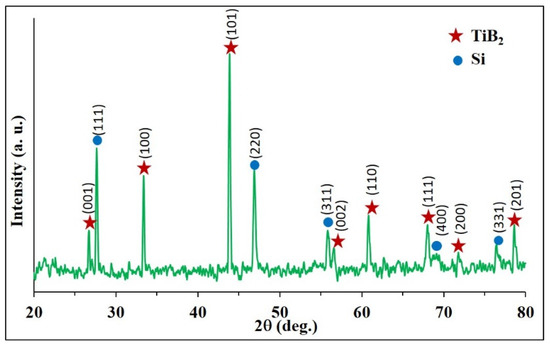 XRD pattern of TiB2-Si composite after selective laser melting (SLM) (I = 1400 mA).