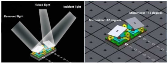 DMD modulates the spatial light and and the flipping micromirrors on DMD arrays (this picture has been modified according to our content on the basis of the original one, Figure 3 of []).
