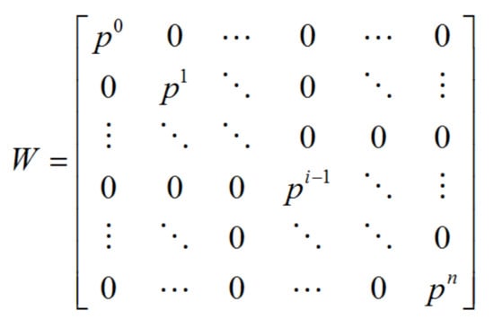 Because the coefficients in DWT domain show a sparse distribution of approximately exponential decay, we use DWT to sparsify the non-sparse signal. In order to make wavelet coefficients more sparse and closer to a true exponential decay distribution, we design a diagonal constraint matrix with its diagonal elements exponentially decreasing as the constraint condition, as shown in Figure 5. This constraint matrix is denoted as W and the diagonal elements of W are in which p is a parameter that can adjust the constraint degree, , i is the i-th diagonal element and n is the length of the original signal.