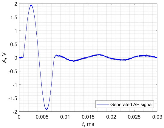 Exemplary acoustic emission (AE) waveform generated at frequency f = 150 Hz.