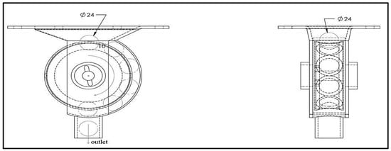 In order to rotate the rolling distributor, a 12 V electric motor equipped with a gearbox was used to turn the rolling distributor through a shaft. One of the essential parameters in the selection of the electric motor was its rotational speed (speed: 40~55 rpm; voltage consumed: 12 V; torque lock: 20~30 Nm; engine power: 55~100 w). Motor speed can be controlled using pulse generation using a timer-integrated chip (555, NXP Semiconductor, 5656 AE EINDHOVEN, Netherlands). If the rotational speed of the electric motor is high, the hazelnut will stick between pullover edge and rolling distributor holes. Besides, high speed does not give enough time to the rolling distributor to be completely filled. Therefore, a gearbox electric motor with a maximum speed of 40 rpm was used.