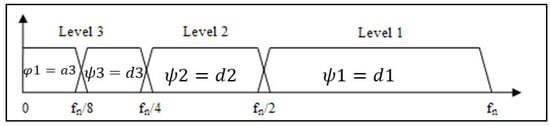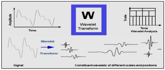 Wavelet analysis, similar to Fourier analysis, is a modified and scaled version of the original wavelet. In fact, the wavelet theory was introduced to overcome the Fourier transform problems. In wavelet analysis, the signals are subdivided into different segments and solved using scale factor and function transformation, and the results are obtained as a set of argument frequency data. In this case, a fully scalable modular window is used to solve the signal cut-off problem. The spectrum is calculated for each situation when the window moves along with the signal. This process is repeated with a window slightly shorter or longer for each new cycle. Finally, a set of time-frequency signal time-frequency representations will have resulted in different resolutions. A discrete wavelet transform is a series of wavelets that results from continuous wavelet transform. In discrete wavelet transforms, different frequencies are analyzed by transmitting signals from the high pass and low pass filters. In addition, in this transform, the signal resolution is controlled by the performance of the filters, and the scale is changed by down-sampling or up-sampling [17,18].