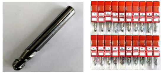 Twenty two-blade ball end milling tools were involved in the experiment, and the spares are shown in Figure 7 with 10-mm diameter, 5° rake angle, 12° flank angle, and 50° helix angle. All of them were tested by a Zoller tool testing instrument. The testing process is shown in Figure 8.
