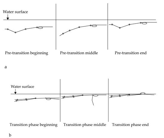 - Hochstein, S.; Blickhan, R. Body movement distribution with respect to swimmer’s glide position in human underwater undulatory swimming. Hum. Mov. Sci. 2014, 38, 305–318. [Google Scholar] [CrossRef]
