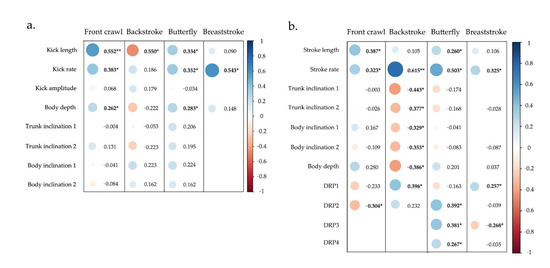 - Barbosa, T.M.; Keskinen, K.L.; Fernandes, R.; Colaço, P.; Carmo, C.; Vilas-Boas, J.P. Relationships between energetic, stroke determinants, and velocity in butterfly. Int. J. Sports Med. 2005, 26, 841–846. [Google Scholar] [CrossRef] [PubMed]