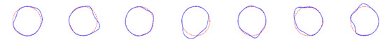 where 2N + 1 and 2M + 1 are the numbers of orders of radial basis function, ϕn, and tangential base function, φφm, in Equation (23), respectively. The weight function is used to construct the Galerkin target function, and the equations are expressed in matrix form, with a size of 2 (N + M + 1) × 2(N + M + 1):