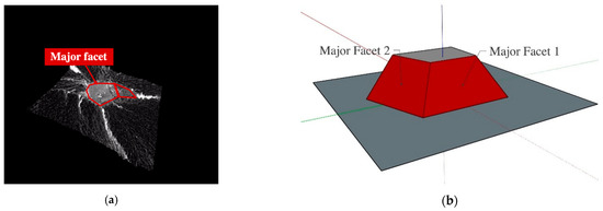 diagrams. (a) Total facets area (surface: ; internal: ); (b) Major facet(s) area (surface: ; internal: ).