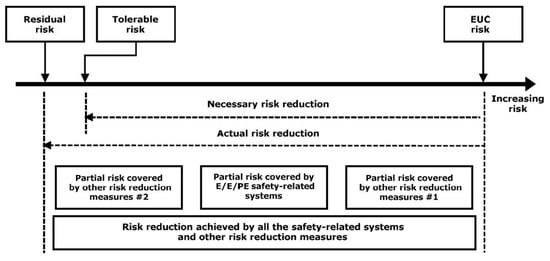 The aim is to ensure that the residual risk—the likelihood of a dangerous event that arises even with safety features—is less or equal to the permissible risk. Figure 1 shows that it is effective where the risk associated with the managed equipment is reduced to permissible risk using the “necessary risk mitigation” strategy. A risk reduction can be achieved by combining elements such as dependence only on safety systems and may also include organizational measures. EUC risk is the risk that exists within the control system and defines specific dangerous situations. To determine the level of risk, in this case, no safety functions are taken into account. Tolerable risk is a risk that is tolerable following the definition of current values. Residual risk—the risk that exists within the control system, but the addition of E/E/PE safety systems and other risk reduction measures is also considered.