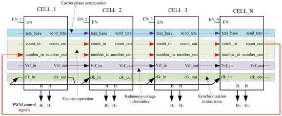 Connection between each cell controller with the proposed decentralized self-aligned level-shifted carriers (DSA-LSC) method.