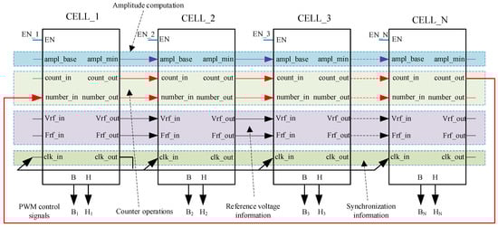 In Figure 5, the cell with index of zero is used as a master cell controller, which is, different from other cells, responsible for providing duty-cycle and clock synchronization for the rest of the system.