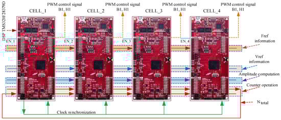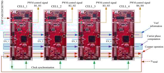 Similar to the case in Figure 5, the cell with an index of zero in Figure 7 is used as a master cell controller, which is, different from other cells, responsible for providing the modulation index of reference voltage, reference frequency, and clock synchronization for the rest of the system.