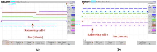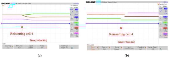Reconfiguration system response when reinserting cell 4, (a) conventional method; (b) proposed DSA-PSC method.