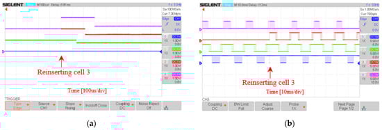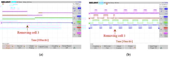 Control signal of IGBT when removing and reinserting cell 4 by using DSA-LSC method, (a) PWM control signals; (b) PWM control signals.