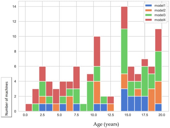 Finally, information about the machines can be used without further modifications, that is, information related to the model and number of years in service of each machine—Table 6.