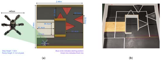 Successful implementations of robot navigation typically involve wheeled systems [25,26,27], yet these methods are constrained to predictable and relatively smooth terrains. Disaster scenarios, however, present navigation obstacles that cannot be solved by wheeled or tracked navigation [28]. Legged robots have demonstrated potential applicability in tasks such as search and rescue operations, and the handling of hazardous waste and recovery in disaster scenarios [29,30]. Legged robots also exhibit sufficiently high torque and speed for demanding terrains [31]. Xi et al. attempted to increase energetic economy by using multiple gaits in a single walking robot [32], and Carpentier et al. proposed a centroidal dynamics model for multicontact locomotion of legged robots [33]. Walking robots are a potential solution, but autonomous approaches are not yet reliable enough [34,35,36,37].