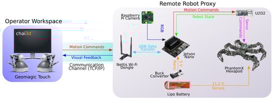 - Chitrakar, D.; Mitra, R.; Huang, K. Haptic Interface for Hexapod Gait Execution. In Proceedings of the 2020 Fourth IEEE International Conference on Robotic Computing (IRC), Taichung, Taiwan, 9–11 November 2020; pp. 414–415. [Google Scholar]