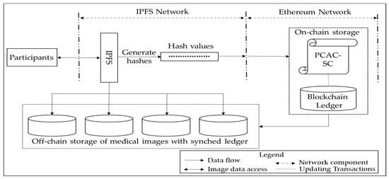 Architecture of patient-centric image management (PCIM) system. The architecture component split into two main decentralized modules: IPFS and Ethereum network.