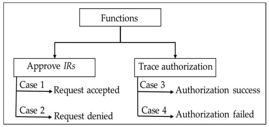 We verify the access sequence and interaction between entities by testing two main functions for brevity. We choose approve_IRs() for the accept/deny permission to access a medical image and trace_authorization() to verify access privileges for a given Ethereum address. Figure 5 shows that the approved IRs and trace authorization functions provide the following test cases: request accepted, request denied, authorization success, and authorization failed. The results obtained by testing the case 1–4 is shown in Figure 6, Figure 7, Figure 8 and Figure 9 which depict the summary of the transaction event log stored in the blockchain after the successful execution of the functions.
