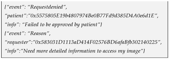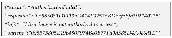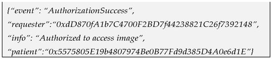 Case 3: event log stored in the blockchain. Information shows that the address was authorized to access a patient medical image.