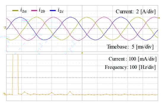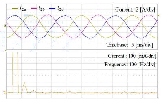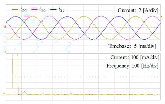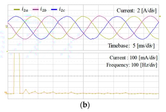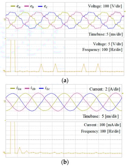 Figure 31 shows the experimental results of the integral-resonant state feedback controller for Case 1 under distorted grid voltages in Figure 31a. Similar in the simulation, three-phase distorted grid voltages include the 5th, 7th, 11th, and 13th harmonics with the magnitude of 5% of the fundamental component. Figure 31b shows three-phase grid current waveforms and FFT result for a-phase grid-side current with the current reference of 4 A without the grid impedance. As expected, the disturbance caused by distorted grid is well suppressed, providing high-quality grid currents.