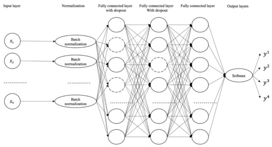 The calculated results are sent to the activation function to obtain the output layer’s input vector . An activation function normalizes the output of each node to a range or to a probability distribution. Many activation functions, such as ReLU and SoftMax, have been introduced to suit different neural network problems. The ReLU activation function returns 0 if it receives any negative input, but for any positive value it returns input value back. The SoftMax activation function converts a vector of numbers into a vector of probabilities, where the probabilities of each value are proportional to the relative scale of each value in the vector. The SoftMax activation function is often used in the output layer of classification problems.