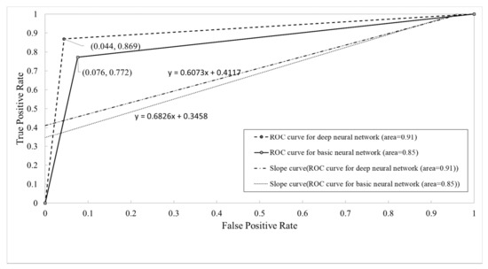 Figure 9 presents the average ROC curves for both the basic neural network and the deep neural network model. The AUC of the deep neural network is larger than the AUC of the basic neural network; this finding indicates that the deep neural network model offers greater accuracy than the basic neural network.