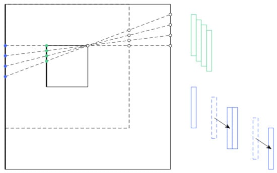 Depiction of extension of backprojected lines to a domain three times larger than input image size. See text for details.