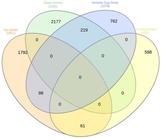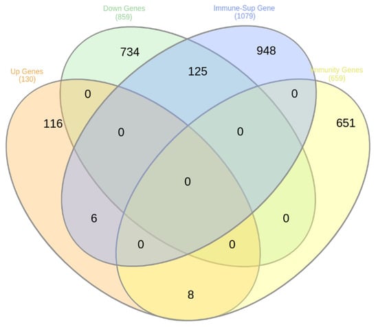 Venn diagram between DEGs of comparison-II with gene set-2 (immune suppressor) and gene set-1 immunity related genes.