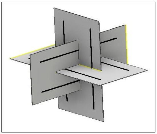 In this study, CSK and NSK were modeled by using a 12-strut tensegrity. Since these two structures are different sizes, CSK was surrounded by a sphere with the same radius as the cytoplasm, but the NSK was surrounded by a smaller sphere with a radius equal to the diameter of the nucleus. Any tensegrity structure may be constructed using several hypothetical planes passing through the center of the sphere [19]. The struts are located in these planes. For example, for the 6-strut tensegrity model, each pair of struts are located in a plane, and three planes are needed to create a structure (Figure 2).