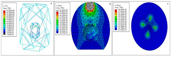 This system of equations was solved by the general-static tools of the Abaqus package. The stresses, strains, and reaction forces can be determined in the post-processing step.
