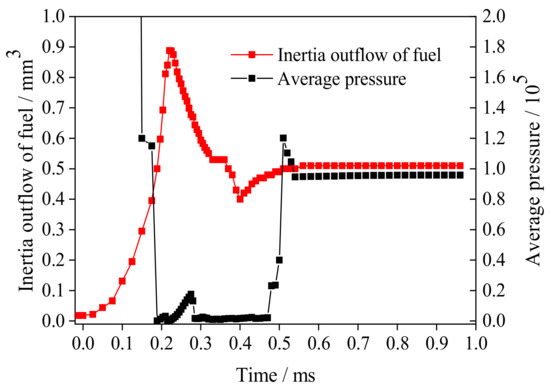 The variation of fuel inertial outflow and average pressure inside the nozzle.