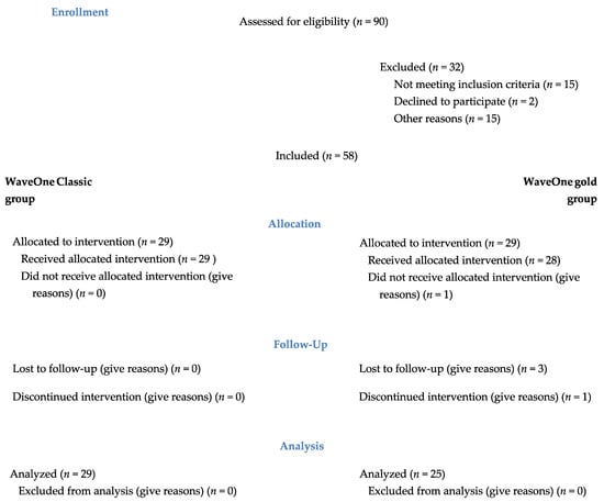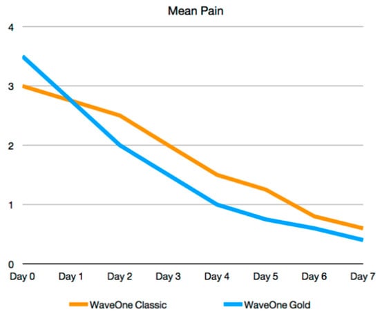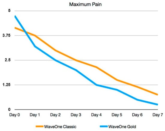 - Pasqualini, D.; Corbella, S.; Alovisi, M.; Taschieri, S.; Del Fabbro, M.; Migliaretti, G.; Carpegna, G.C.; Scotti, N.; Berutti, E. Postoperative quality of life following single-visit root canal treatment performed by rotary or reciprocating instrumentation: A randomized clinical trial. Int. Endod. J. 2015, 49, 1030–1039. [Google Scholar] [CrossRef]