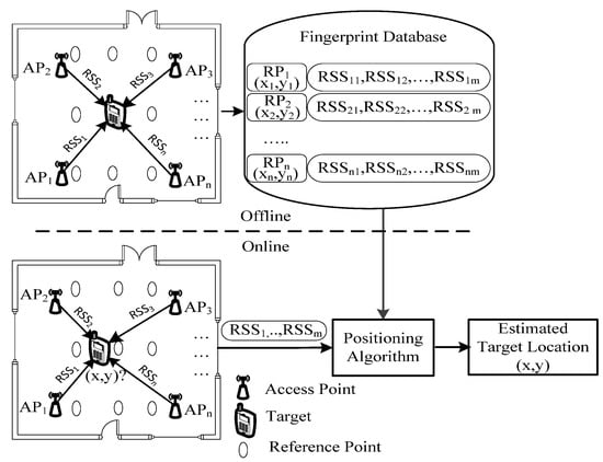 - Yu, N.; Zhao, S.; Ma, X.; Wu, Y.; Feng, R. Effective Fingerprint Extraction and Positioning Method Based on Crowdsourcing. IEEE Access 2019, 7, 162639–162651. [Google Scholar] [CrossRef]