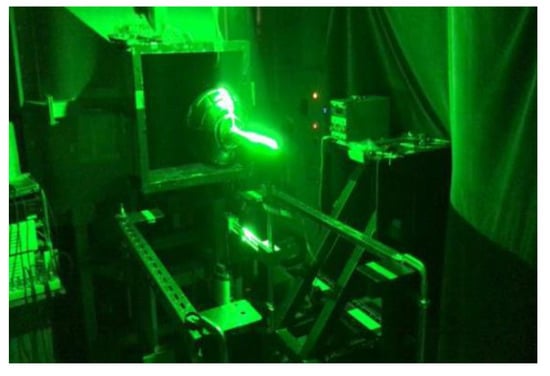 In order to visualize the location of the flow separation point and the flow in the vicinity for the four balls shown in Table 1, 2D-PIV measurements were performed as shown in Figure 6. Three velocity ranges were measured: subcritical region (laminar flow), critical region, and supercritical region (turbulent flow). PIV images were taken with a NAC MEMRECAM HX-3 at 2000 FPS with a resolution of 5 megapixels. A Lee Laser MODEL LDP-100MQG was used as the laser light source, with a peak pulse power of 2.0 kW. We used Koncerto II, an analysis software from Seika Digital Image. The laser light sheet was placed on a meridian line of the soccer ball and photographed from the side with a high-speed camera. The high-speed camera’s shooting interval was set to 15 μs, the average frame rate was 2000 fps, and the thickness of the laser light sheet was set to 3 mm. The smoke of Dioctyl sebacate was used as tracer particles.