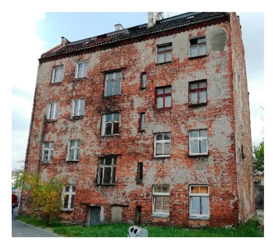 Currently, there is an urgent need to develop principles for the comprehensive technical assessment of residential buildings erected using traditional methods. This is the stage that determines the appropriate method (well recognized in, e.g., [9,10,11,12,13,14,15,16,17]) of their technical and social reconstruction. This article is meant to be a contribution towards determining the impact of factors related to the broadly understood sphere of the maintenance of downtown tenement houses on their technical wear.